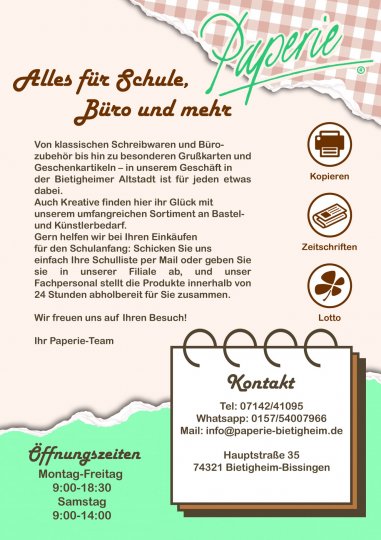 Was immer Sie für Schule, Büro oder zum Verpacken und Verschenken, zum Basteln oder Zeichnen brauchen, – wir haben es. Sie finden bei uns ein umfangreiches und markenbetontes Sortiment sowie interessante und aktuelle Trends.